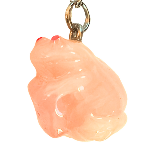 Clawed frog pendants with recycled rose quartz crystals - available as necklaces and earrings.
