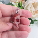 Red CZ (recycled bracelets), Polymer Clay, UV resin, Metal